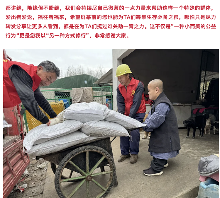 师父从2010年开始救助流浪动物,打交道最多的地方,除了佛堂,就是自己收容所和当地的一些救助中心。目前救助基地收容近千只毛孩子,当下基地口粮告急,急需支援!